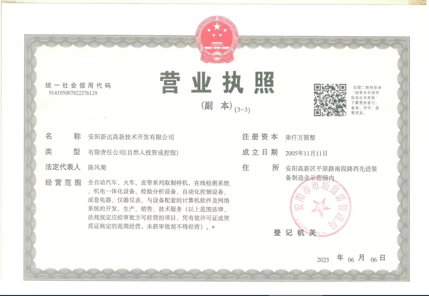 安阳新达高新技术开发有限公司是集机械制造、工业自动化、软件开发、电气控制于一体的综合性企业;主要从事汽车、火车、皮带等系列全自动采样机、制样系统、全自动采、制、检一体机;全自动采、制、包、喷一体机;自动化控制系统、网络工程等设备的开发研制、生产销售、安装及售后服务。